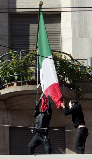 Black bloc a Roma con gli indignados. Frantumano una statua della Madonna e bruciano la bandiera italiana. Due immagini di una giornata infernale » Black bloc a Roma il 15 ottobre