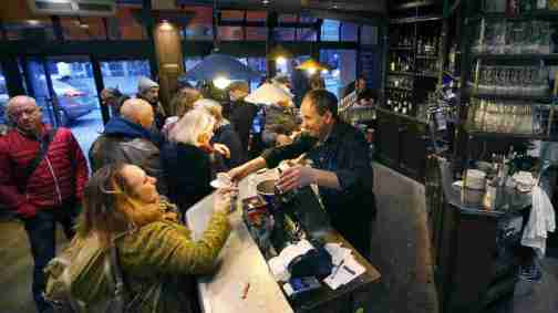 “The facade of La Bonne Bière has been hastily repaired, and city trash collectors have begun to clear away flowers from several of the cafes and restaurants attacked.