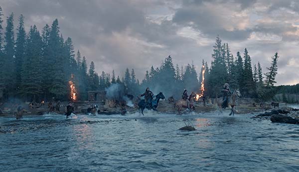 The first snowfall came on September 3 and there was a monster snowfall on November 28, before a pivotal scene in which the actors cross a river while under attack from Native Americans. “Everybody was freezing,” says production designer Fisk. “Parts of the river were freezing over as we were shooting, and suddenly big chunks of ice were coming up over the set.” It was –30 degrees.