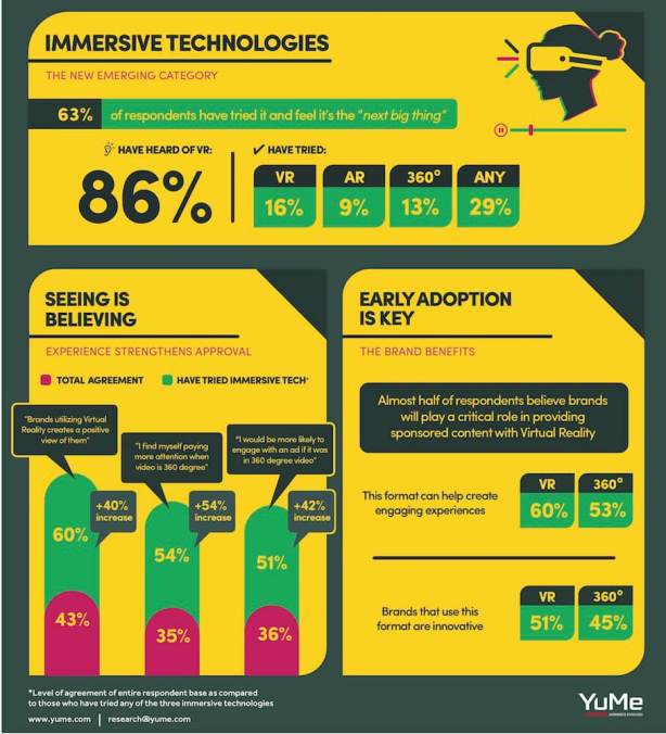 Virtual reality (VR) and other immersive technologies are now driving increased exposure to advertising, says a new study from ad tech provider YuMe.