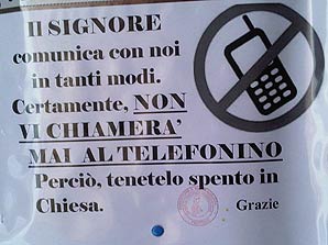 Il Signore? Non vi chiamerà mai al telefonino. Spegnetelo durante la Santa Messa. L’idea del parroco