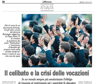 Il celibato dei sacerdoti è il tema di uno scontro culturale epocale molto acceso che sta animando le riflessioni più profonde e strategiche della Chiesa Mondiale. (altro…)